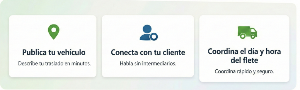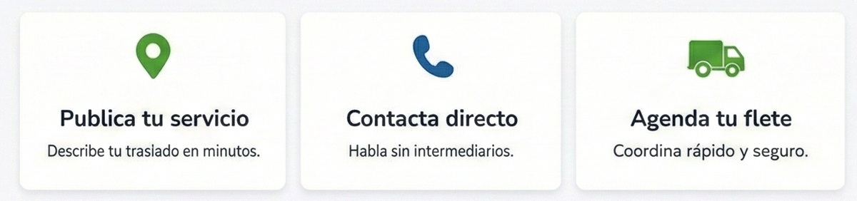 FleteMatch.cl conecta personas con transportistas en su comuna de forma rápida, directa y sin comisiones ocultas. Nuestra misión es simplificar la búsqueda de fletes en Chile, entregando una plataforma segura, transparente y fácil de usar.
